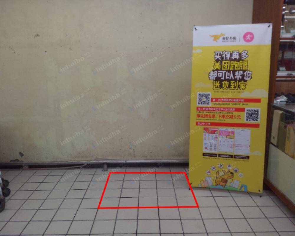 该展位位于超市的正门入口处,整个位置处于整个超市的主要进出口位置处,视野开阔,曝光性强,适合小面积的摆展推广。